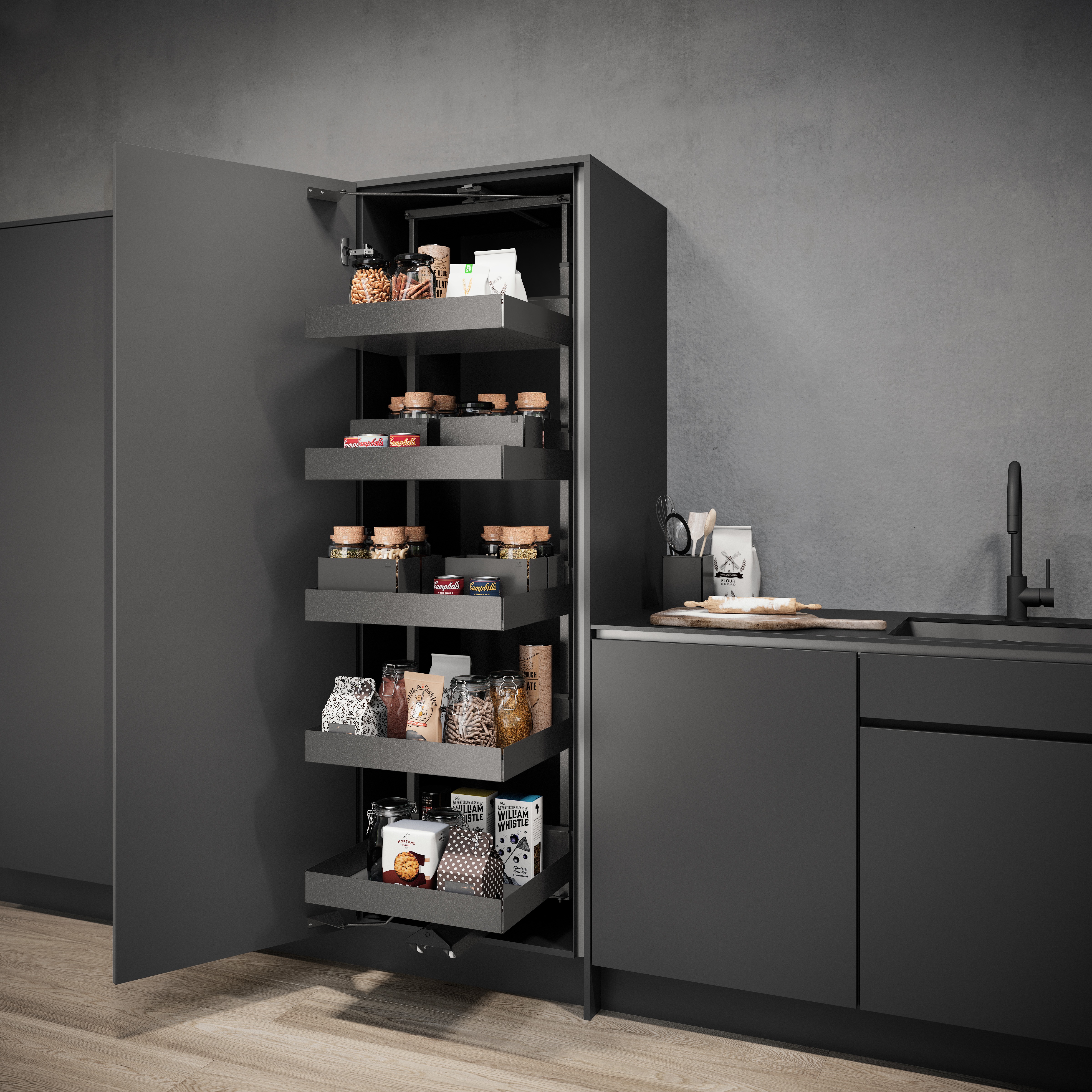 Con il nuovo mobile da terra VS SUB® Larder, avete a disposizione un’altra soluzione salvaspazio flessibile all’interno della gamma di sistemi modulari Larder di Vauth-Sagel – ideale per chi ama un’organizzazione impeccabile in cucina. Con il modello VS SUB® Larder potete accedere facilmen