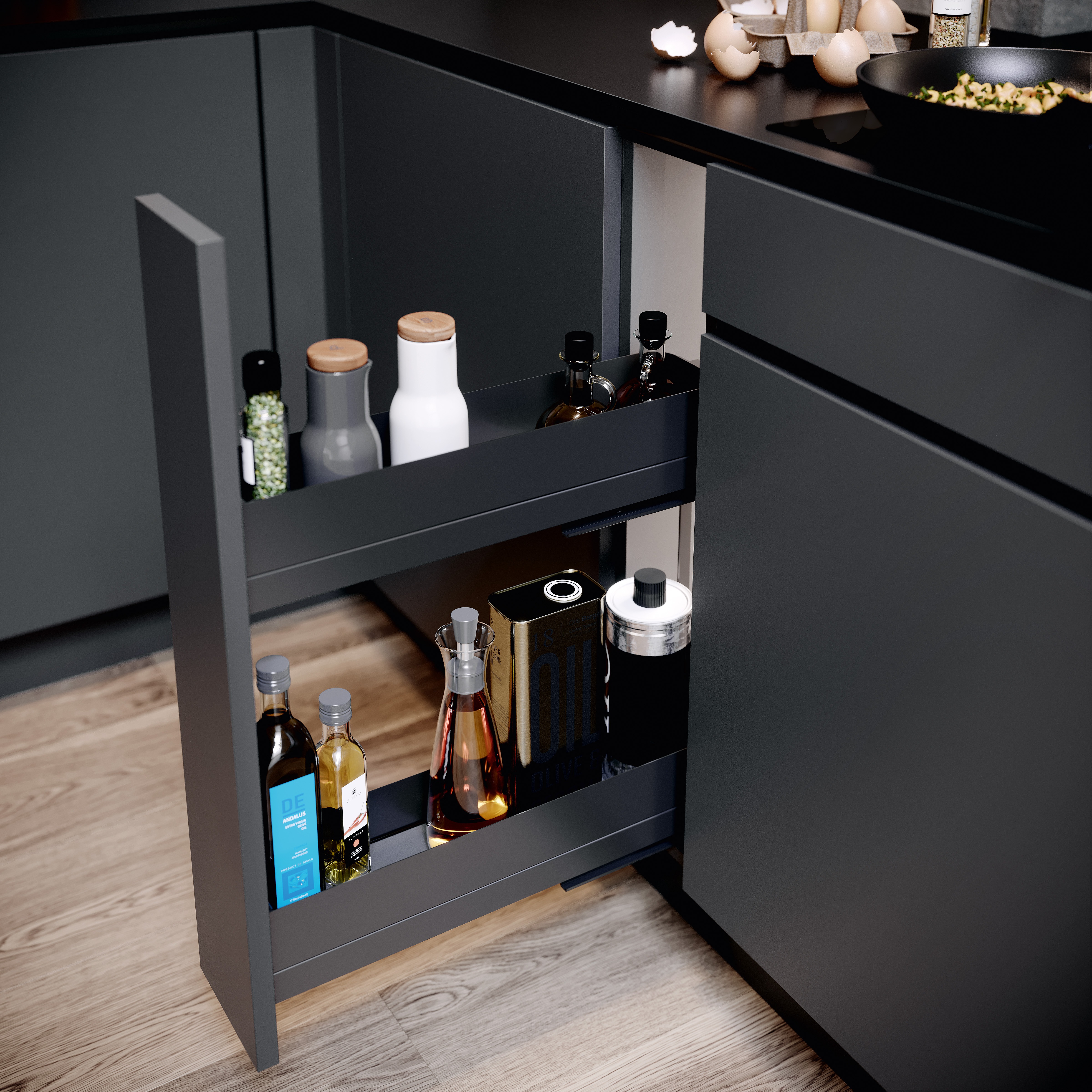 Niches in the kitchen often remain unused – until now. With two stationary shelves the smallest gap becomes a storage space miracle. Installer benefits: -Right Hand Installation Only No need to worry about right or left handed applications, the VS SUB® Slim can only be installed only on