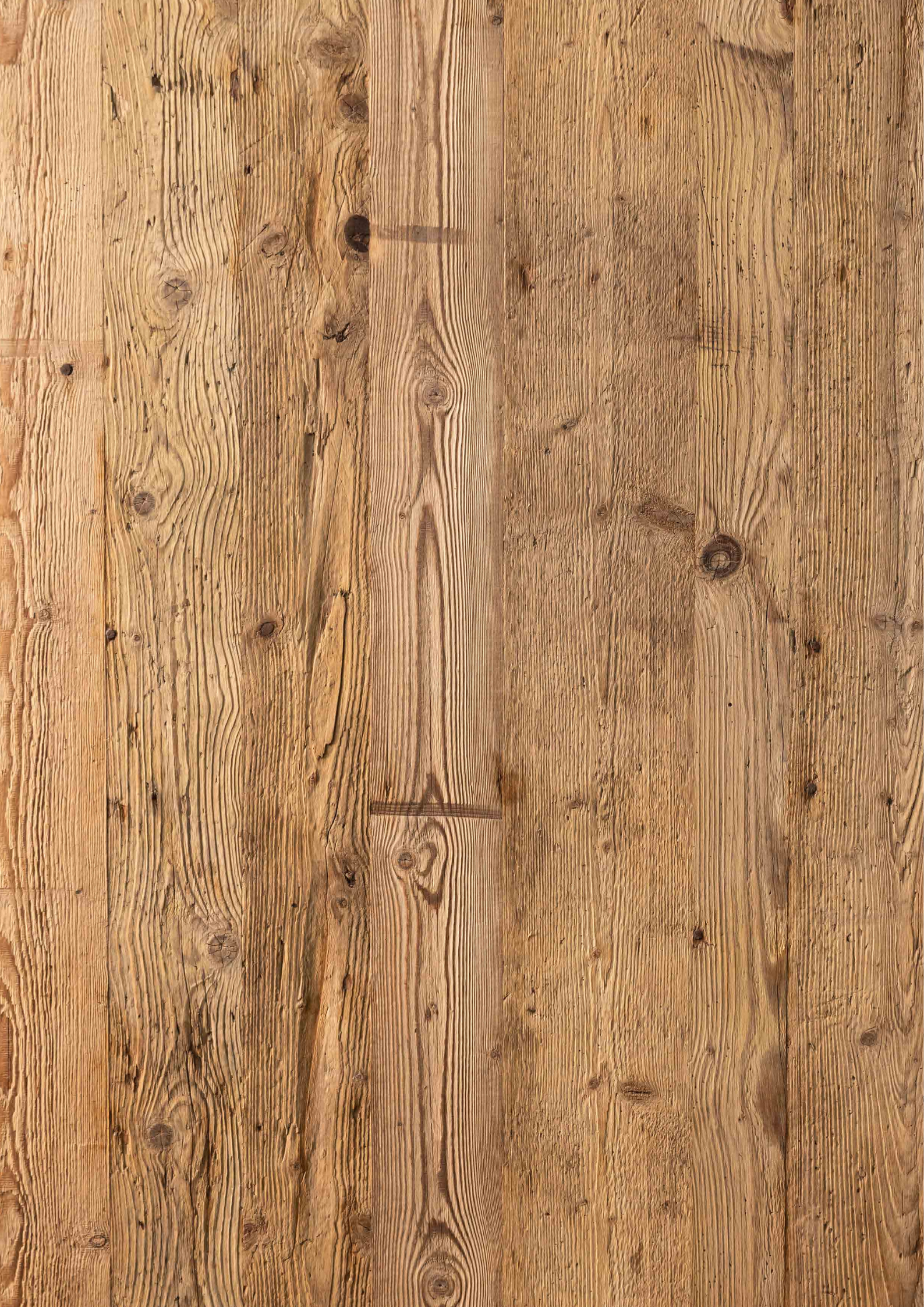 Il pannello Antermoia rende un delicato omaggio al passare del tempo grazie all’abete recuperato da vecchi pavimenti. Ogni tavola racconta la storia della sua precedente usura e del calpestio dei passi, catturando il suo lento invecchiamento attraverso la patina spazzolata, capace di esaltare la m