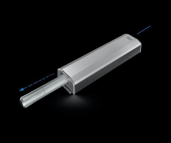 Il sistema di apertura premi-apri ammortizzato di Titus per ante senza maniglia garantisce un'apertura dell'anta silenziosa, controllata, e senza rimablzo e una chiusura affidabile e sicura.