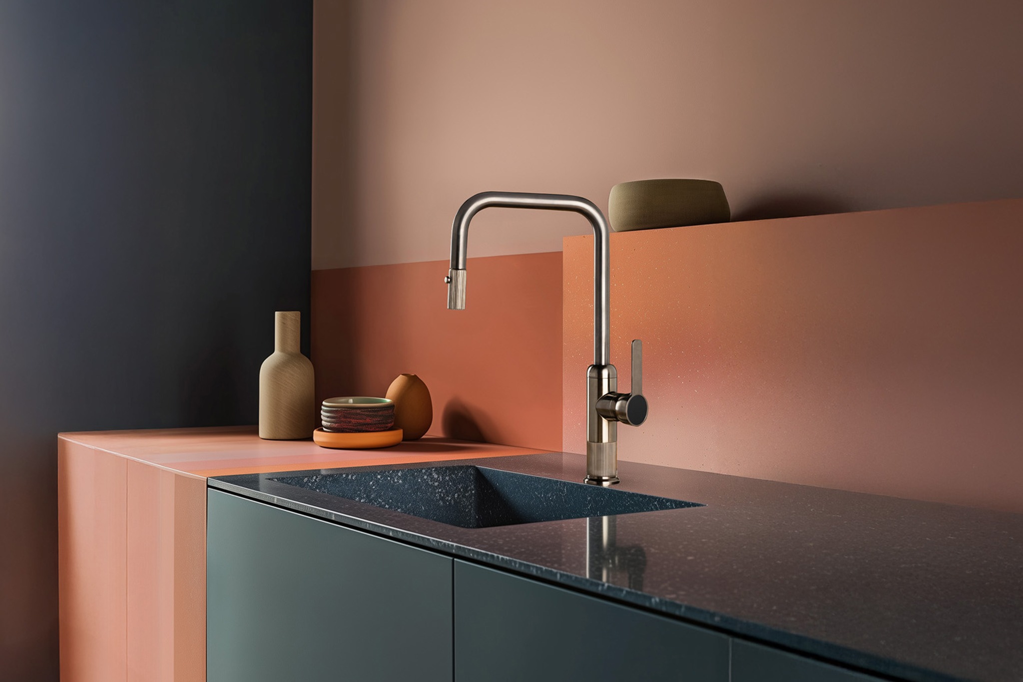 La cucina si trasforma in un ambiente dallo charme vintage e dal forte impatto visivo. Geometrie decise e dettagli metallici raffinati richiamano l’eleganza senza tempo dell’Art Déco. Lumière fonde design ricercato e funzionalità moderna in un’estetica audace e sorprendente.