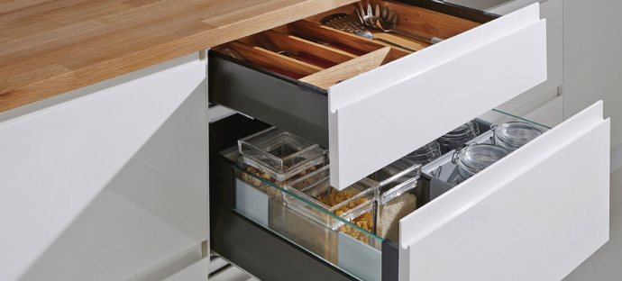 La gamma MATRIX comprende guide, spondine e accessori per cassetto. Siamo in grado di fornire la soluzione più adeguata per qualsiasi esigenza e applicazione in cucina, in soggiorno, in laboratorio o in un negozio.