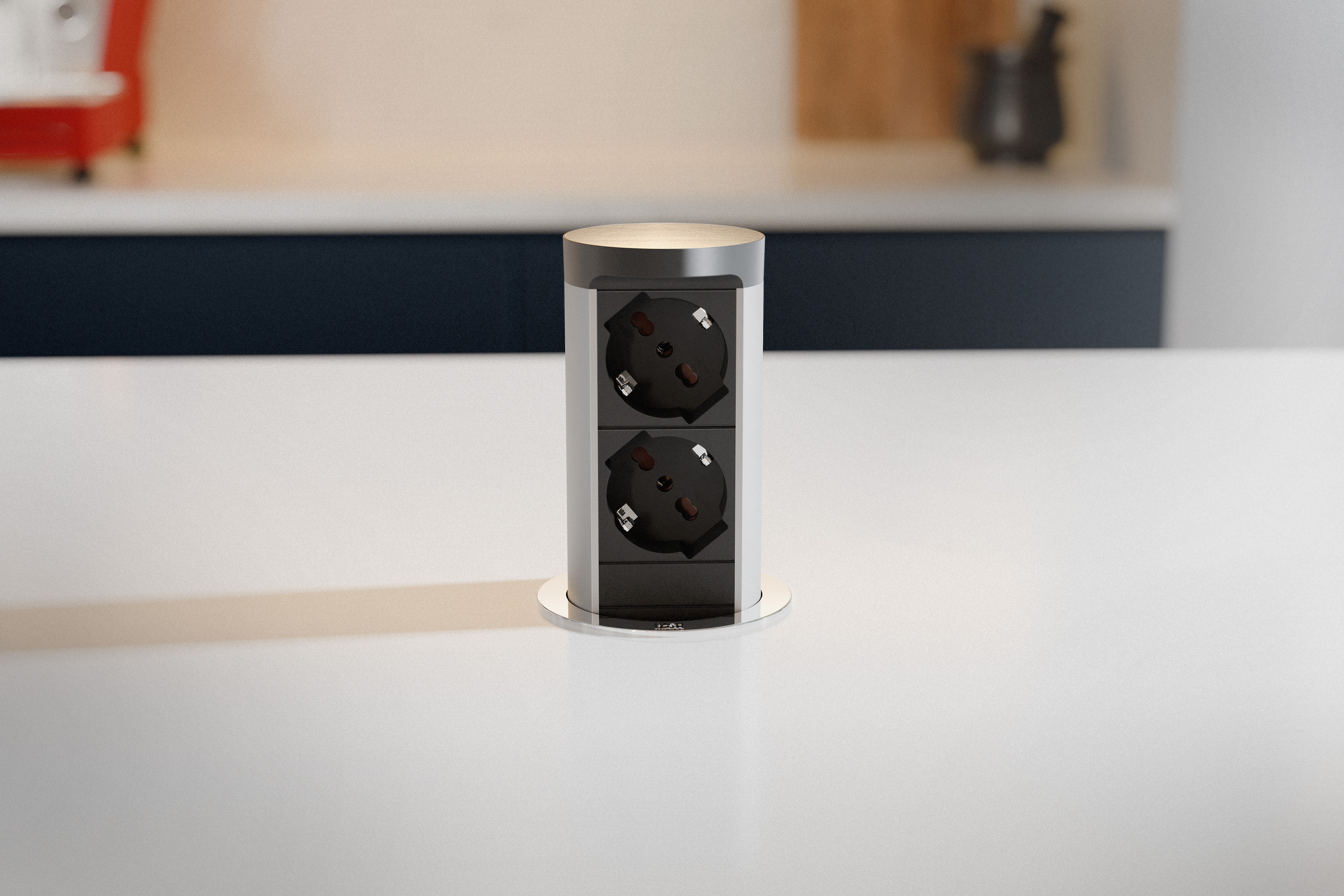 Incassata perfettamente nel piano di lavoro, ELEVATOR 2 si solleva al tocco di un dito e scompare quasi a filo quando non è in uso. Elegante e potente: questa unità di presa intelligente offre la ricarica USB-C da 45W, protezione dagli schizzi IP44 e ricarica wireless opzionale con Qi2 & Magnetic