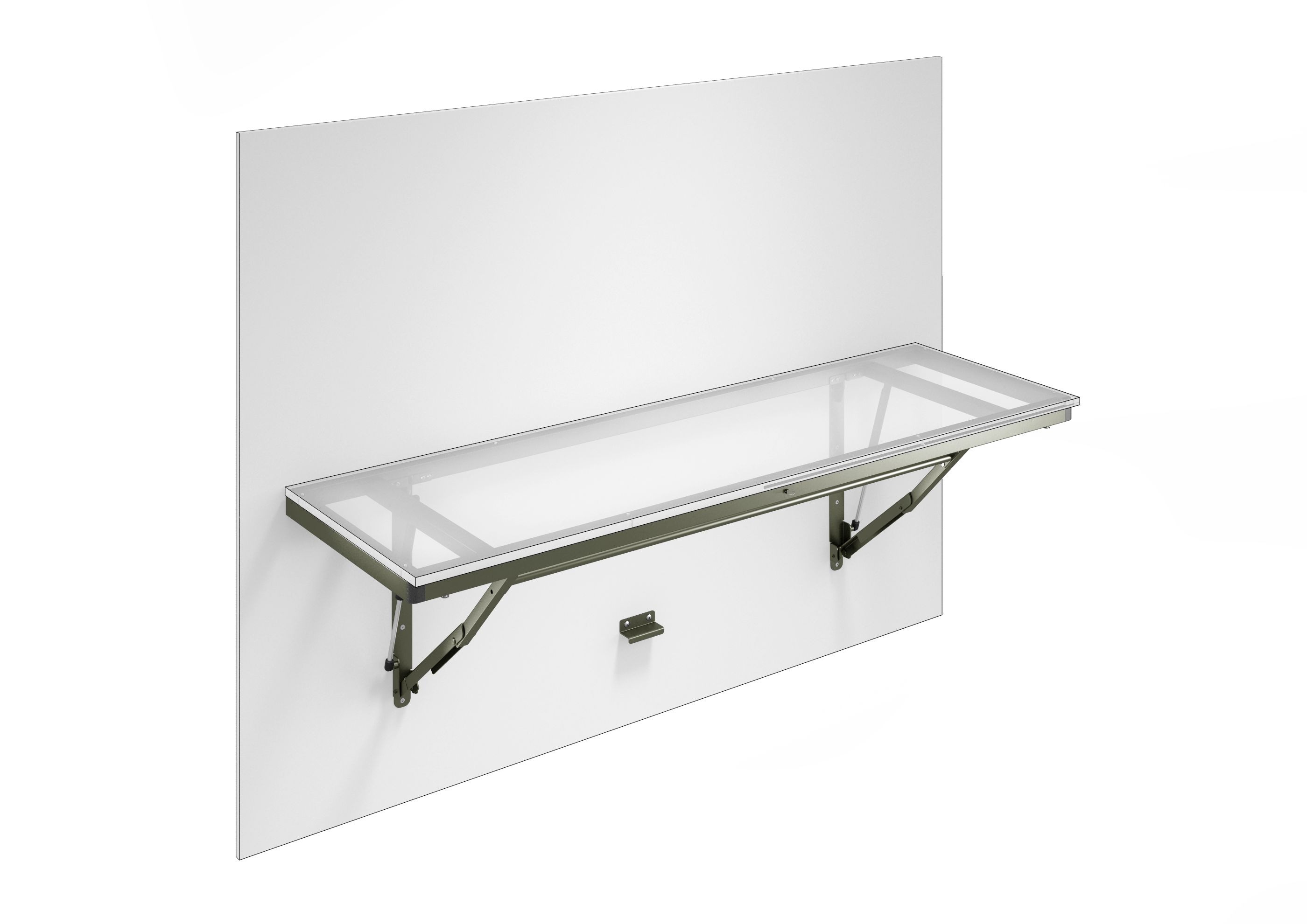 Sistema salvaspazio per tavolo con meccanismo a portafoglio utilizzabile per tutti i letti orizzontali e verticali o applicabili alla parete. Grazie ad un sistema di leve il meccanismo è progettato per impedire l'auto chiusura accidentale.