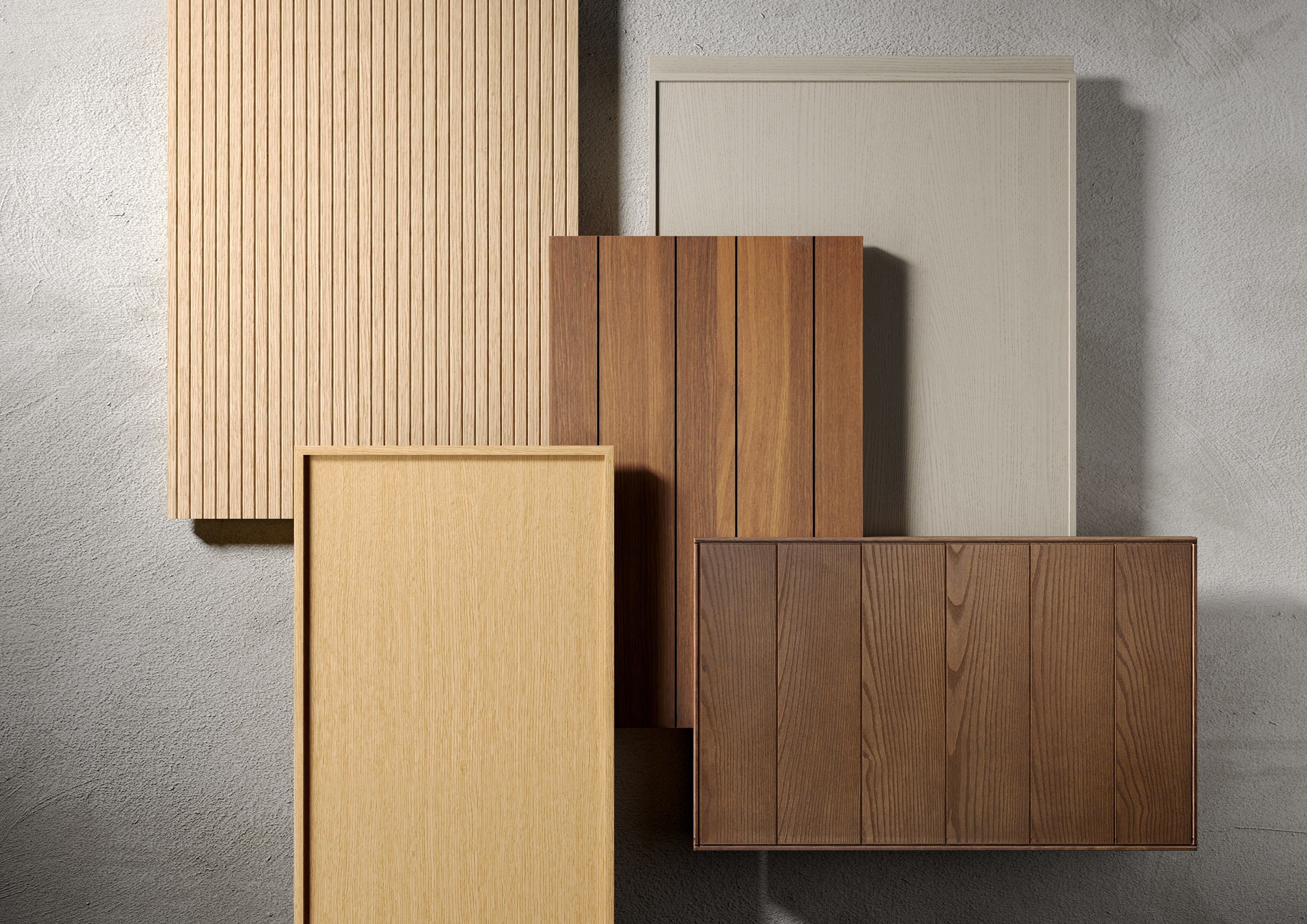 RHYTHMS è la nuova collezione che rinnova il design classico delle serrandine in alluminio per mobili. Questa collezione presenta tre nuovi tipi di doghe in alluminio, ognuna con una caratteristica trama cannettata: dal disegno a cuspide della doga da 20 mm all'effetto cannettato delle doghe da